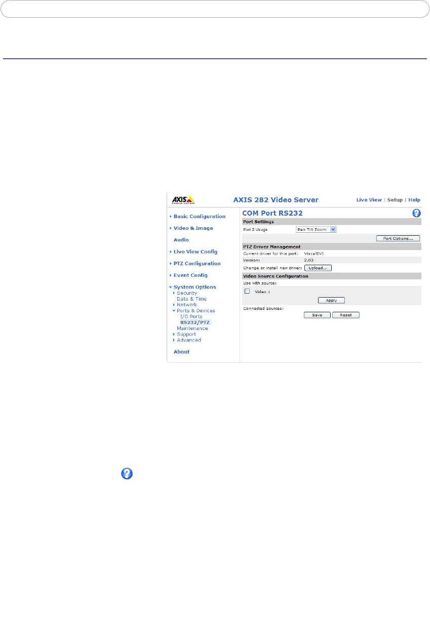 6. From System Options > Ports & Devices, select the port configured for PTZ and